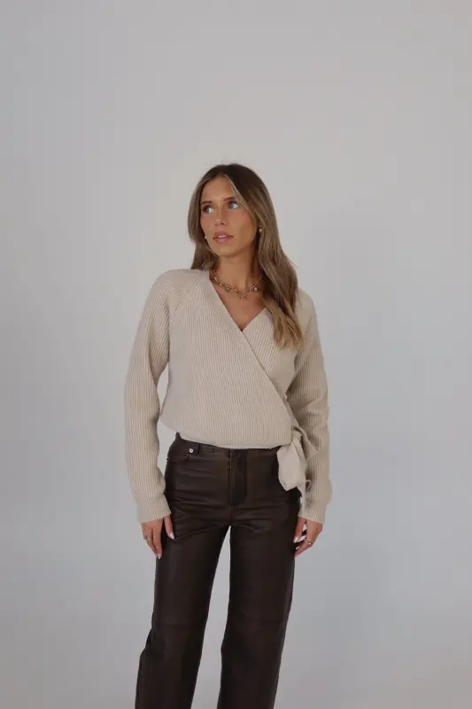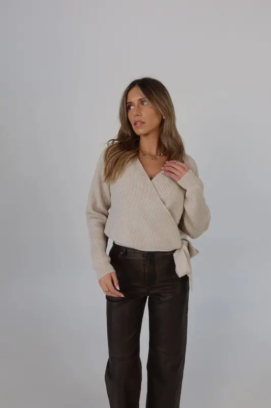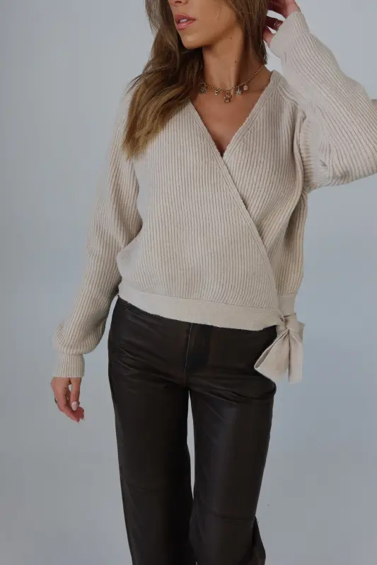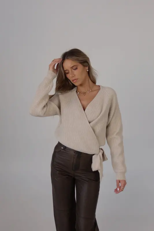 The Cozy Surplice Wrap Knit Sweater is the perfect blend of style and comfort. Made from a soft blend of acrylic, polyester, and nylon, this long-sleeve sweater features a flattering surplice wrap design that adds a modern touch to any look. The wrap detail creates a beautiful drape, perfect for layering over your favorite camisoles or wearing on its own. Ideal for transitioning through seasons, this sweater is versatile enough for casual outings or dressing up for an evening out. Pair it with jeans or skirts for a chic and cozy ensemble.