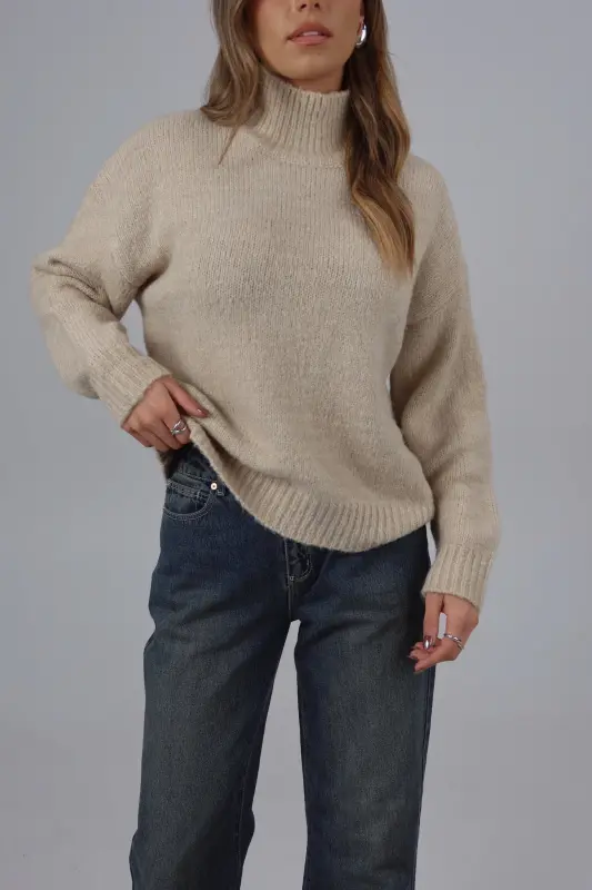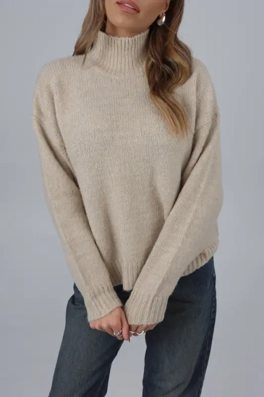 Meet your new comfort obsession: our perfectly oversized high-neck sweater in dreamy cream. This contemporary masterpiece combines dramatic volume with elegant simplicity, creating the ultimate statement piece for your wardrobe. The luxurious high neckline adds a sophisticated touch, while the relaxed, oversized silhouette delivers that coveted effortless chic vibe. Long sleeves provide cozy coverage, making it perfect for those 'throw-on-and-go' moments when you want to look polished without trying too hard. Style it with sleek bottoms for the perfect balanced silhouette, or embrace the oversized trend head-to-toe – this versatile piece plays well with everything in your closet.