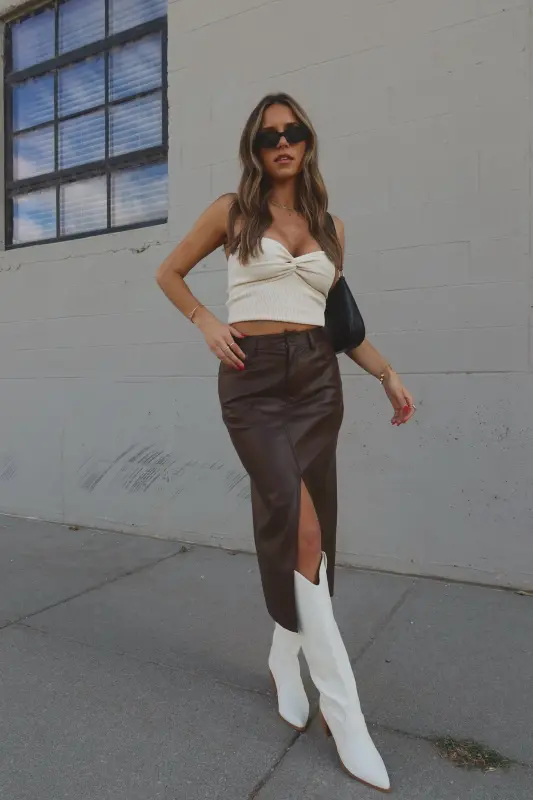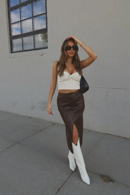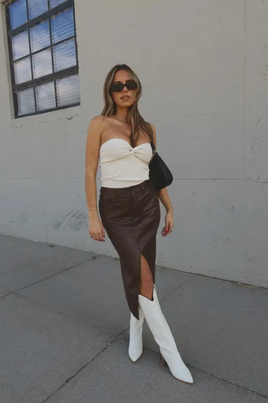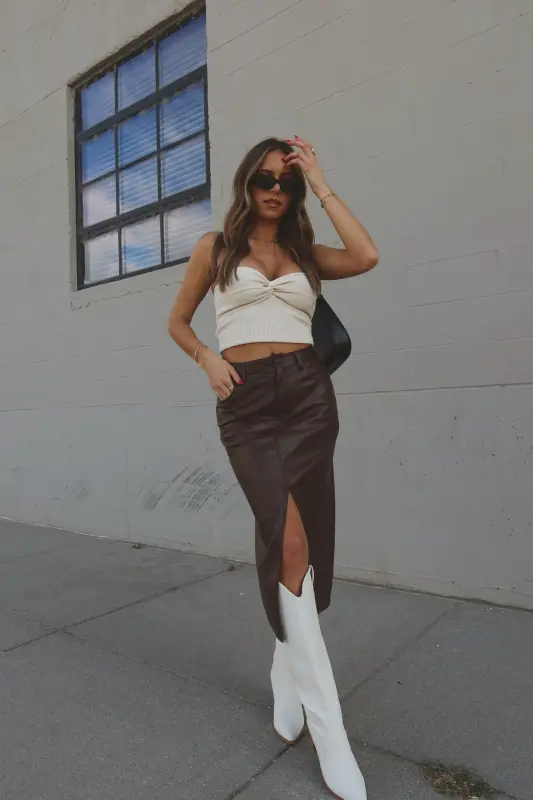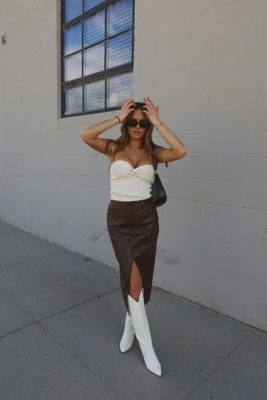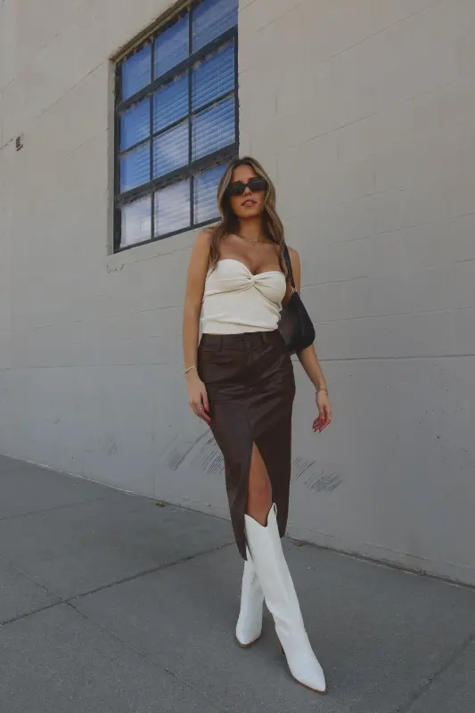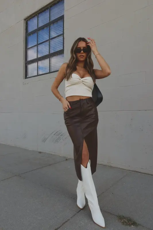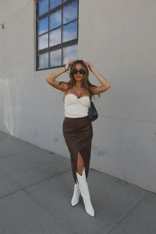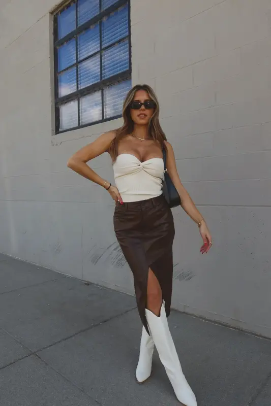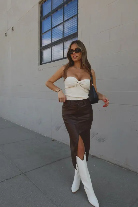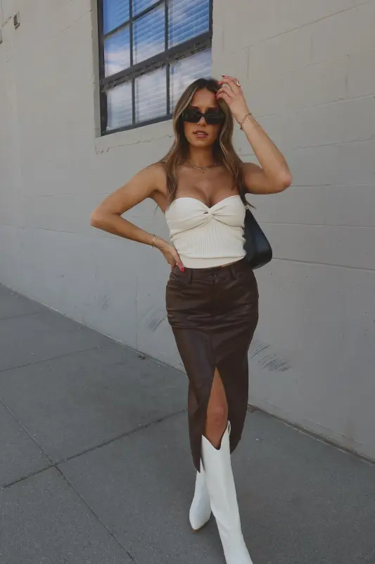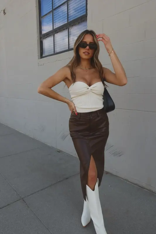 Our Brooklynn Twist Front Tube Top features knot twist detail on the front with sweetheart neckline. The top is made with soft textured ribbed fabric that has plenty of stretch to create a comfortable fit. This top runs true to size.